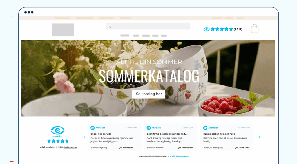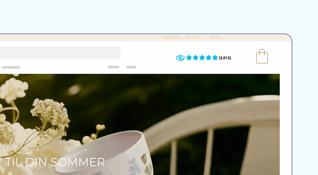 Hos Hjem.dk handlede det ikke kun om at tilføje e-mærket Reviews, men om at implementere dem strategisk. Webshoppen placerede blandt andet en widget tæt på ”Læg i kurv”-knappen samt i menuen, så kunderne hele tiden blev mødt af et tydeligt tryghedssignal.
